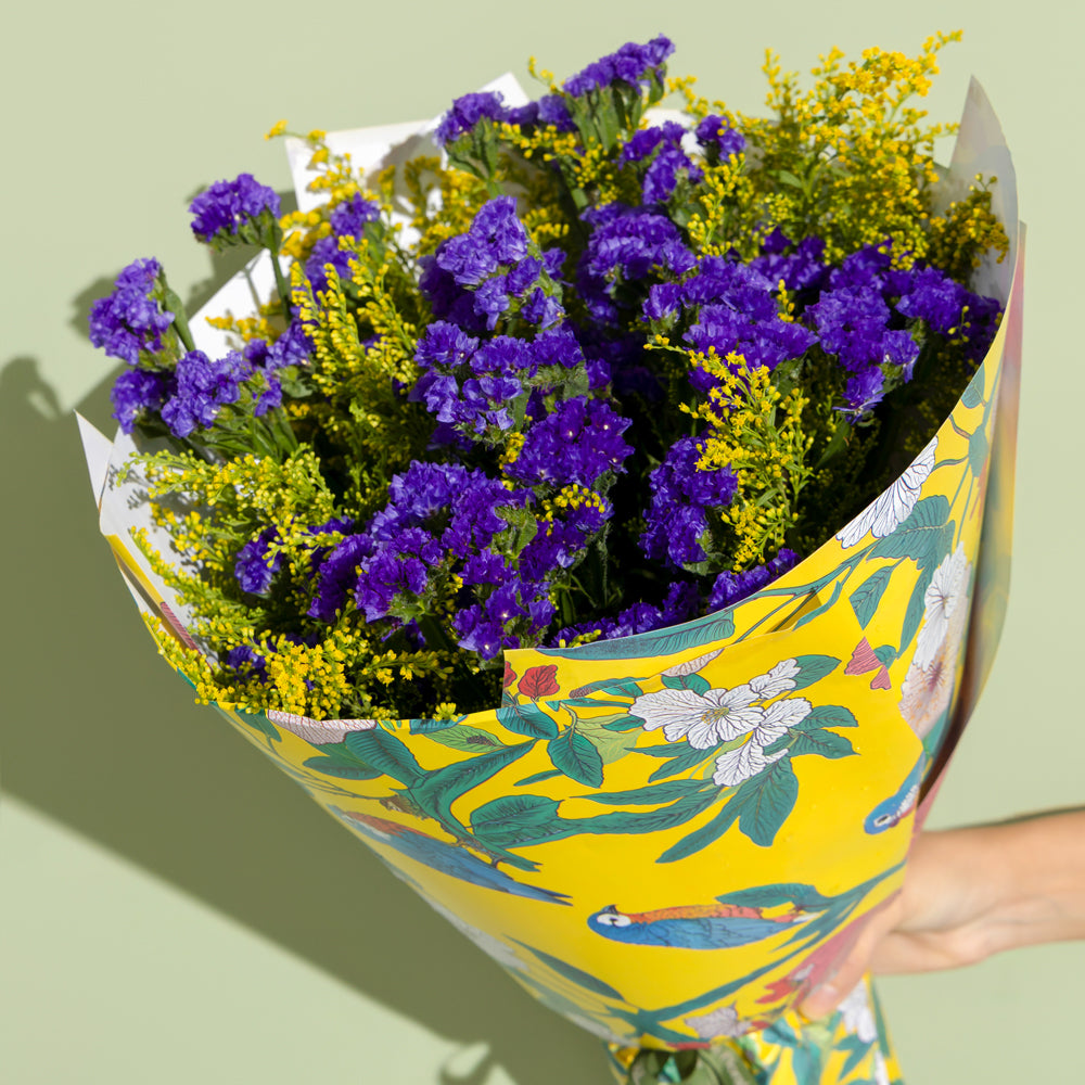 Elevate your floral gifting with this sophisticated hand bouquet, expertly composed of delicate statice and vibrant solidago. The combination of these premium blooms creates a striking visual contrast while offering exceptional longevity—both flowers are renowned for their durability and ability to maintain their beauty throughout extended display periods. Finished with our signature special wrapping, this arrangement arrives presentation-ready, making it an ideal choice for discerning clients seeking refined elegance and lasting botanical appeal.