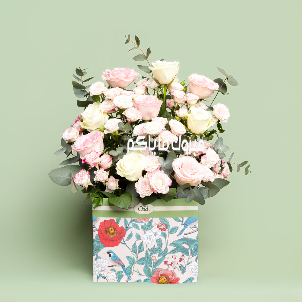 Introducing the Camilla box—a sophisticated floral arrangement that brings timeless elegance to any space. This expertly curated composition features premium roses paired with delicate baby roses, creating layers of texture and visual interest. Complemented by fresh eucalyptus foliage, the arrangement offers a refined aesthetic with subtle botanical notes. Perfect for celebrations, expressions of gratitude, or simply elevating your home décor, the Camilla box delivers professional-quality floristry in a convenient, ready-to-display format.