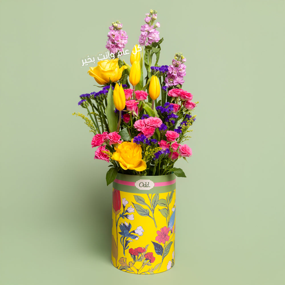 Elevate any occasion with our Yellow Delight arrangement, a sophisticated composition of premium blooms curated for maximum visual impact. This stunning box features vibrant yellow tones complemented by an expertly balanced mix of tulips, statice, roses, and delicate baby roses, along with lush stoma greenery. Each stem is hand-selected and arranged to ensure longevity and aesthetic appeal. Perfect for celebrations, expressions of gratitude, or simply brightening someone's day, this arrangement delivers both elegance and charm that speaks volumes without words.